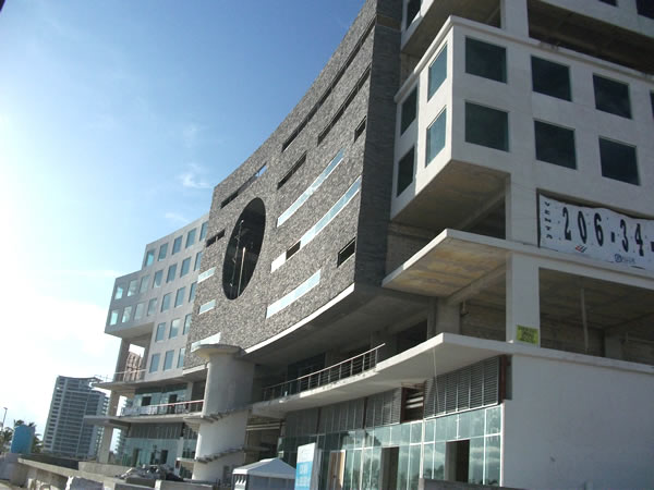 En esta obra hemos realizado mas de 8 000 m2 de muro de block, 1 200 m2 de colocación de mármol, 3 000 m2 de tablaroca, 3 000 m2 de pastas texturizadas y cementosas, asi como la colocación de barandales y herrerías.